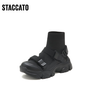 思加图奥莱秋季甜酷弹力袜靴厚底休闲短靴女皮鞋EDW12CD2
