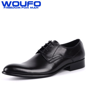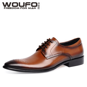 WOUFO皮鞋男英伦真皮尖头系带男鞋 欧版牛皮商务正装男鞋潮流婚鞋