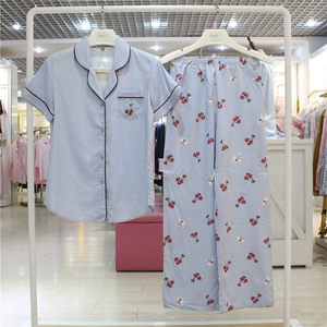 佰伦世家睡衣19年夏季新品女士梭织棉短袖长裤套装家居服9S22287