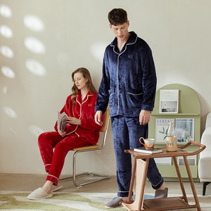 秋鹿【清仓捡漏】珊瑚绒套装情侣睡衣秋冬加厚法兰绒男家居服女冬