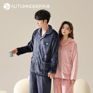 秋鹿【抗静电】新款法兰绒睡衣女秋冬加厚保暖珊瑚绒情侣家居服男