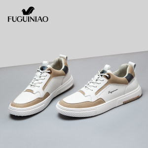 富贵鸟男鞋春季新款休闲鞋韩版时尚百搭白色板鞋皮面低帮小白鞋子