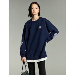 初语圆领假两件卫衣女套头2023年秋季新款宽松抓绒保暖高级灰上衣