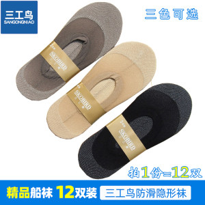 12双装三工鸟隐形船袜夏季网面性感丝袜薄款黑色短筒耐勾丝女短袜