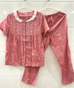 花丛丽影品牌春夏季女士睡衣短袖长裤薄款套装格子开衫夏天家居服