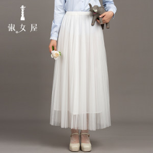 淑女屋旗舰店官网正品春装新款七仙女百褶裙通勤长款雪纱半身裙女