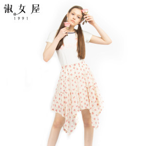 淑女屋春修身柔软微弹人物绣花图案polo版型舒适打底衫长袖t恤女