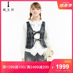 淑女屋2019冬季新款复古钻石黑灰格灰姑娘马夹羊毛女士背心小外搭