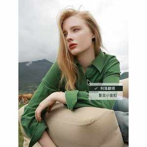 【温暖内搭】三彩2023秋冬季新款纯棉灯芯绒衬衫复古衬衣短上衣女