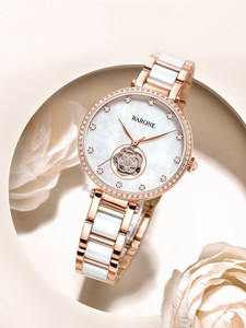 Rarone雷诺手表女士山茶花气质时尚优雅石英表陶瓷手表女款送女友