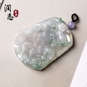 润志 老坑冰种伏虎罗汉翡翠玉牌男 缅甸新品飘绿翡翠挂件036-119