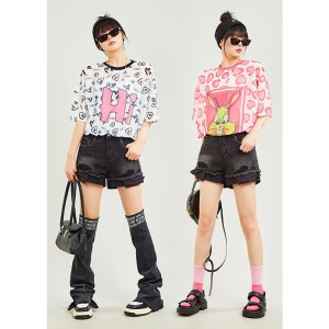 木果果木商场同款木果果木2023新款a字拼接设计黑色热裤牛仔短裤 黑牛 26
