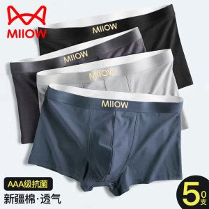 MiiOW/猫人男士内裤男棉制舒适透气简约时尚男生平角四角短底裤头