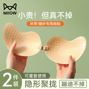 猫人胸贴女聚拢上托隐形防滑无肩带内衣防凸点夏季薄款吊带婚纱用