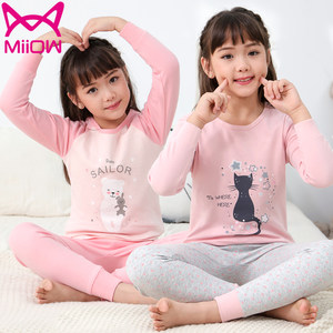 猫人女童秋衣秋裤大童女孩全棉儿童内衣套装保暖纯棉睡衣棉毛衫春