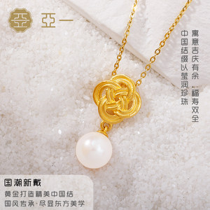 亚一足金黄金珍珠吊坠天作之合结缘中国结盘扣挂坠新中式国风设计