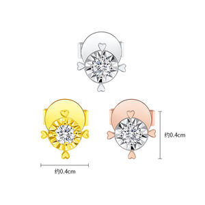 潮宏基至简圆闪18K金玫瑰彩金钻石耳钉耳饰耳扣单只母亲节礼物