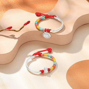 潮宏基好事发生s925银手镯银饰半镯童镯福锁福袋铃铛长命富贵宝宝