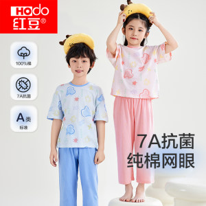 红豆儿童睡衣纯棉春夏薄款网眼家居服套装男童女童全棉抗菌空调服