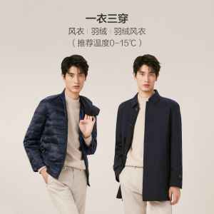 红豆风衣羽绒服大衣男士外套2022年冬季新款加厚加绒保暖防风上衣
