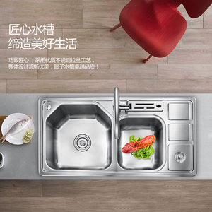 樱花304不锈钢水槽双槽套餐厨房洗菜碗盆一体加厚水盆台下盆8801