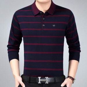 恒源祥中年男士长袖t恤 秋季男装翻领薄款针织体恤衫含羊毛爸爸装