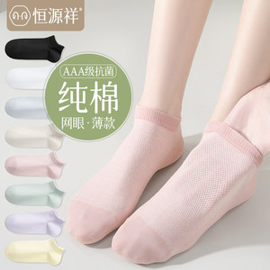 恒源祥船袜子夏季男士纯棉薄款抗菌防臭吸汗100%棉网眼袜隐形短袜