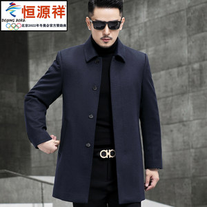 恒源祥羊绒大衣男士中长款冬季加厚中年商务休闲羽绒内胆翻领外套
