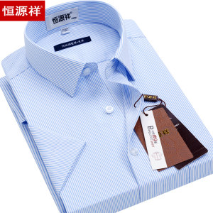 恒源祥男士短袖衬衫夏季中青年商务正装蓝色条纹全棉工装寸衫衬衣