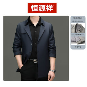 恒源祥纯色中长款风衣夹克新款春秋季商务休闲中年男士爸爸装外套