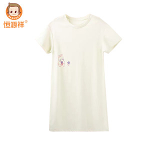 恒源祥女童睡裙纯棉薄款夏季中大童家居服女孩睡衣宝宝连衣裙短袖