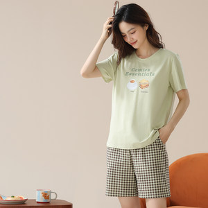 恒源祥纯棉少女睡衣女夏季薄款短袖可外穿短裤休闲透气家居服套装