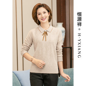 Q恒源祥妈妈装女士羊毛衫秋季新款时尚淑女风纯羊毛翻领针织毛衣