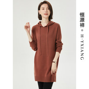 Q【纯山羊绒】恒源祥女羊绒衫V领长款秋冬款针织衫毛衣连衣裙纽扣