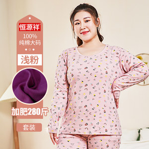 恒源祥大码秋衣秋裤女纯棉胖妹加肥加大保暖上衣线衣线裤内衣套装