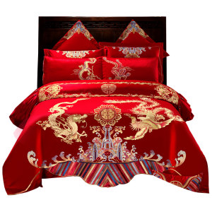 恒源祥全棉婚庆四件套纯棉结婚床上用品新婚床品红色喜被龙凤婚嫁