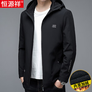 恒源祥男士夹克外套运动连帽加绒加厚中青年男装休闲宽松保暖棉衣