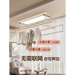 欧派星奶油风电动晾衣架阳台升降遥控智能晾晒衣服杆自动隐形室内