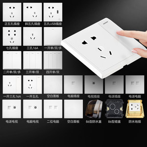 德力西官方旗舰店开关插座面板空调16a墙壁一开五孔家用86型821白