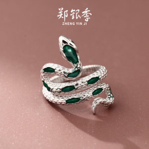 郑银季S999银 复古泰银衔尾蛇戒指男女个性尾戒夸张食指开口