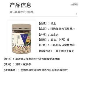 香港楼上 一级精选特选珍品加拿大花旗参片 151g 西洋参花旗参粉