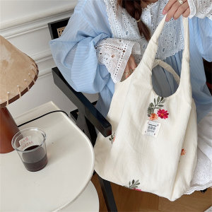 慵懒风帆布女包可爱花朵大学生单肩手拎袋大容量手提托特包2024款