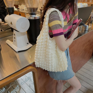 云朵泡芙花朵单肩托特包女夏手提帆布包手提包泡泡购物袋手机褶皱