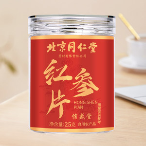 北京同仁堂无糖红参片中红渗葯材高丽参长白山人参正品官方旗舰店
