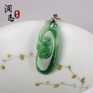 RZJade/润志翡翠天然冰种满绿翡翠玉如意挂件 翡翠吊坠男女正品