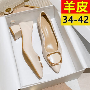 闽北欧罗巴士兵唯品会官方旗舰店大码真皮高跟鞋浅口鞋女粗跟单鞋