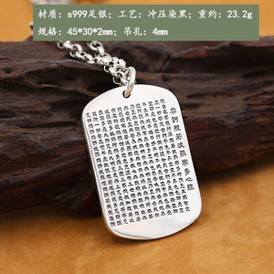 富贵鹿999足银男女纯银挂坠观音心经佛牌刻字吊坠潮流时尚佛经