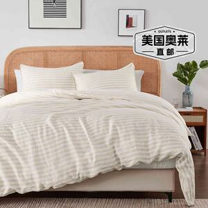 puredown 亚麻被套 3 件套吸湿排汗透气条纹图案 - 黄色/白色 【
