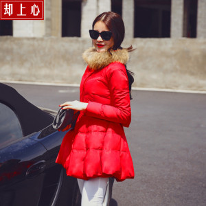 原创主题大摆中长款修身显瘦貉子毛领羽绒服2023冬季立领外套女装