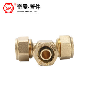 奇爱 铝塑管接头 太阳能接头 铜等径三通管件 卡套配件 全铜加厚